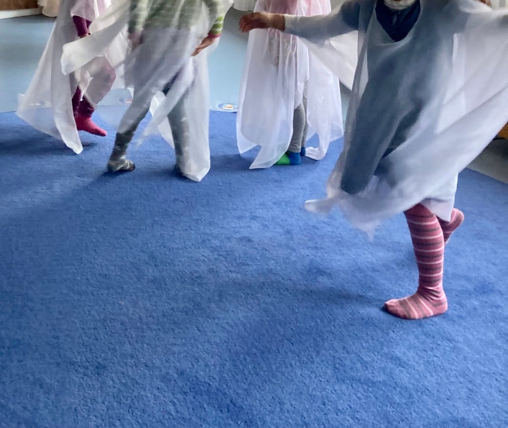 - Utvecklar sin skapande förmåga att förmedla upplevelser, tankar och erfarenheter i många uttrycksformer som lek, bild, rörelse, sång och musik, dans och drama.