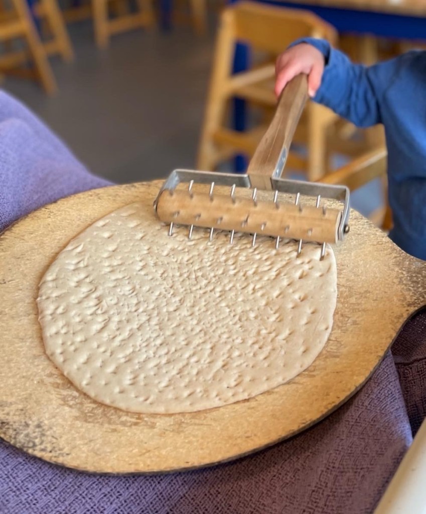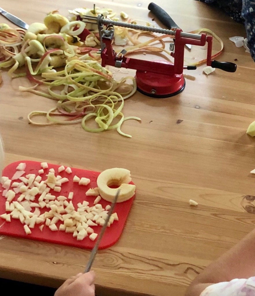 Vår planlösning och miljö erbjuder närhet till köket, grytorna och dofterna. Varje dag bjuds barnen på mat som lagats här från grunden och vi bakar även vårt eget bröd som serveras till frukost och mellanmål. Under höstens uppstartstema Äpplevänner har vi äpplefabrik i vilken vi syltar och saftar tillsammans som ett sätt att skapa gemenskap. Till jul är barnen med och får ta del av gamla lokala mattraditioner då vi bakar bakebröd, pepparkakor och lussekatter. Att få göra egen korv och julköttbullar är också alltid spännande och uppskattat av barnen.